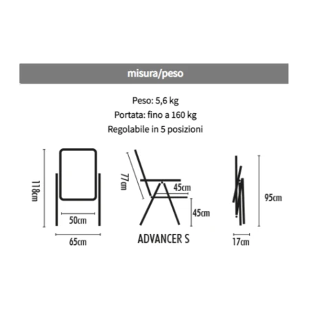 Sedia estremamente stabile e robusta con un’altezza della seduta di 45 cm.
